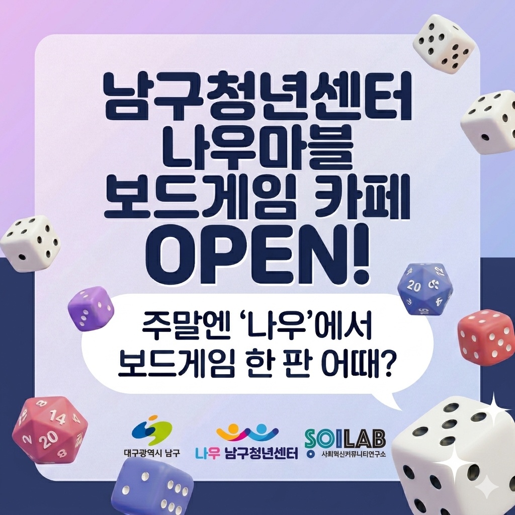📢 대구 남구청년센터 신규 직원 채용 안내 대구 남구청년센터(수탁기관: 협동조합 소이랩)에서 청년도전지원사업을 함께 운영할 청년매니저(운영지원)를 ...