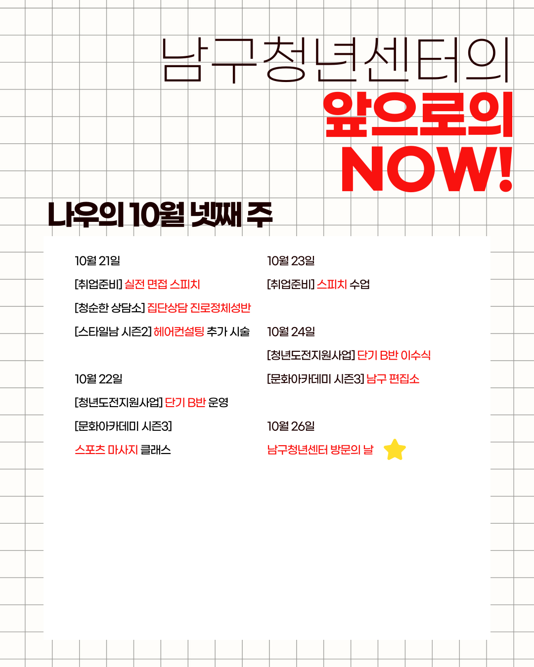남구청년센터의 지금은? NOW! 10월 셋째주 주간지