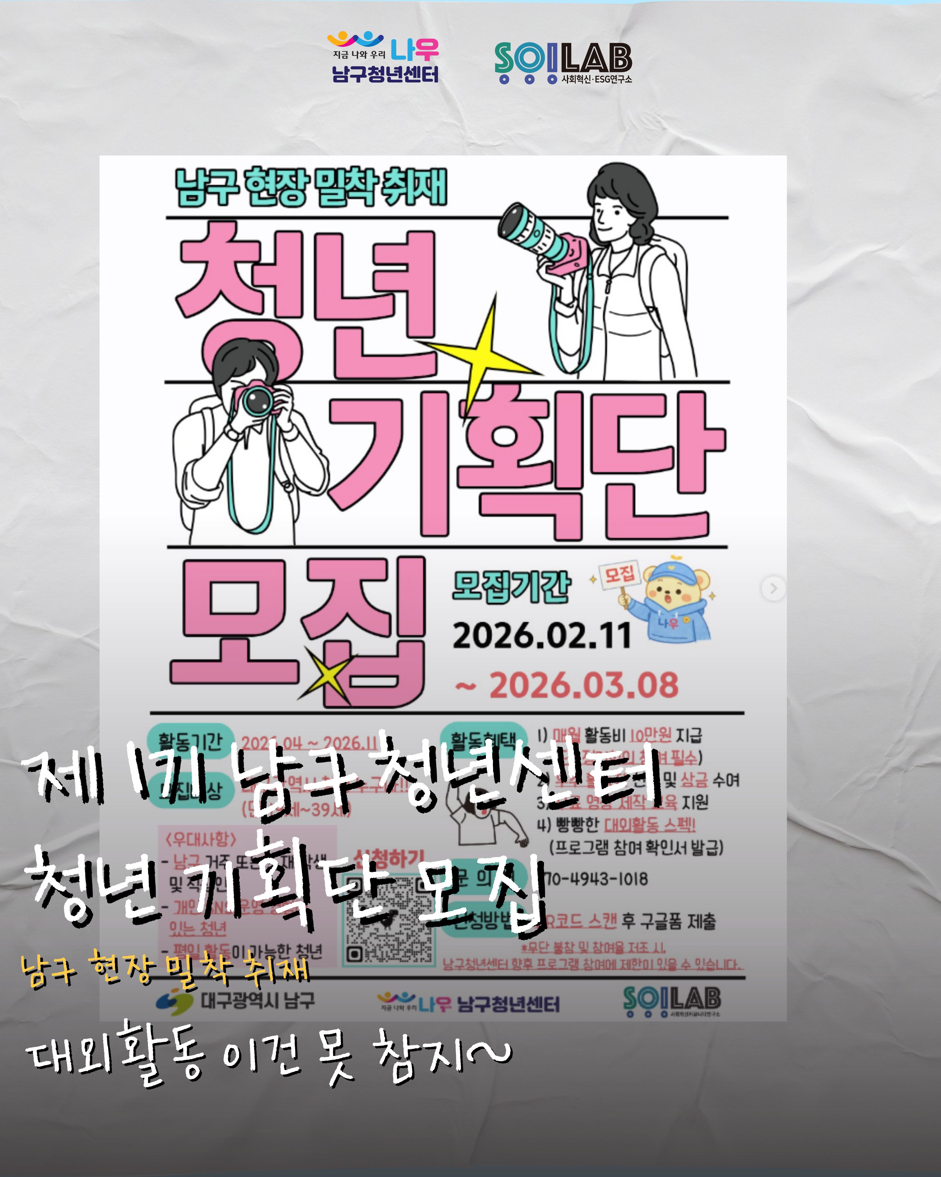 남구청년센터의 다양한 활동을 모아둔 아카이브입니다.