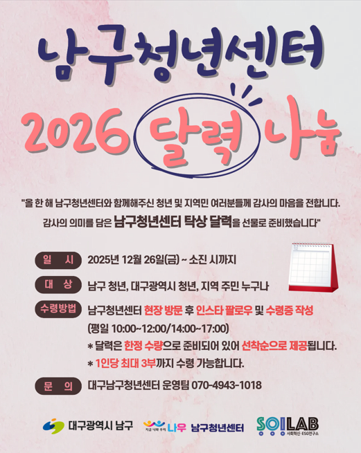 ✨ 남구청년센터 2026 탁상 달력 ✨을 준비했습니다.
