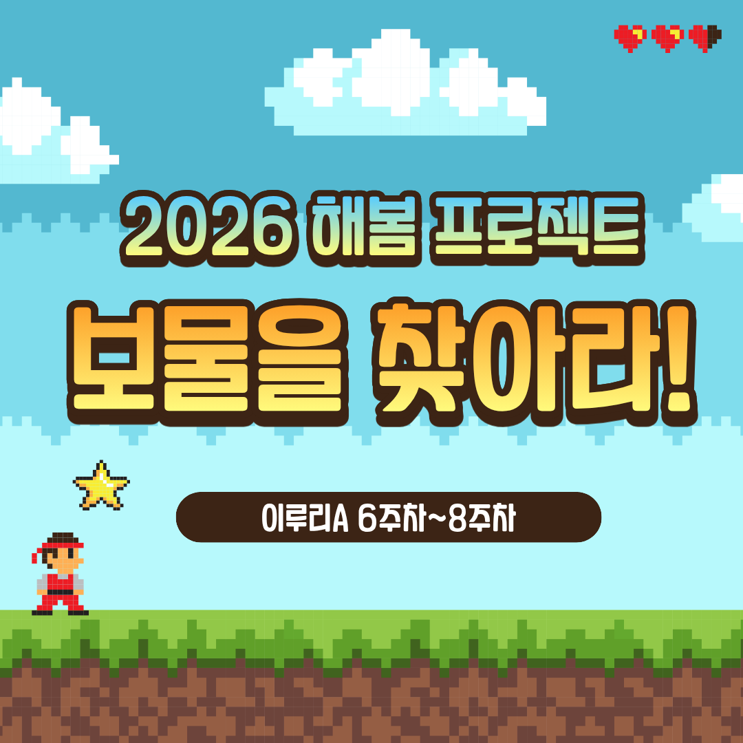 💎 2026 청년도전지원사업 해봄 프로젝트 이루리A 보물을 찾아라! 📅 일시: 3월 24일(화) 13:00 ~ 18:00 📚 과정 : 해봄 프로젝트 이루리A 9주차 ...