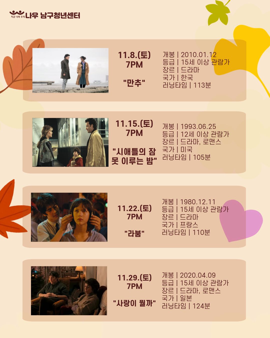 #봉덕극장 #남구청년센터 #대구청년 #무료영화관 #11월영화 #가을영화 #대구데이트 #동네영화관 #청년센터프로그램 #대구남구 #청년문화