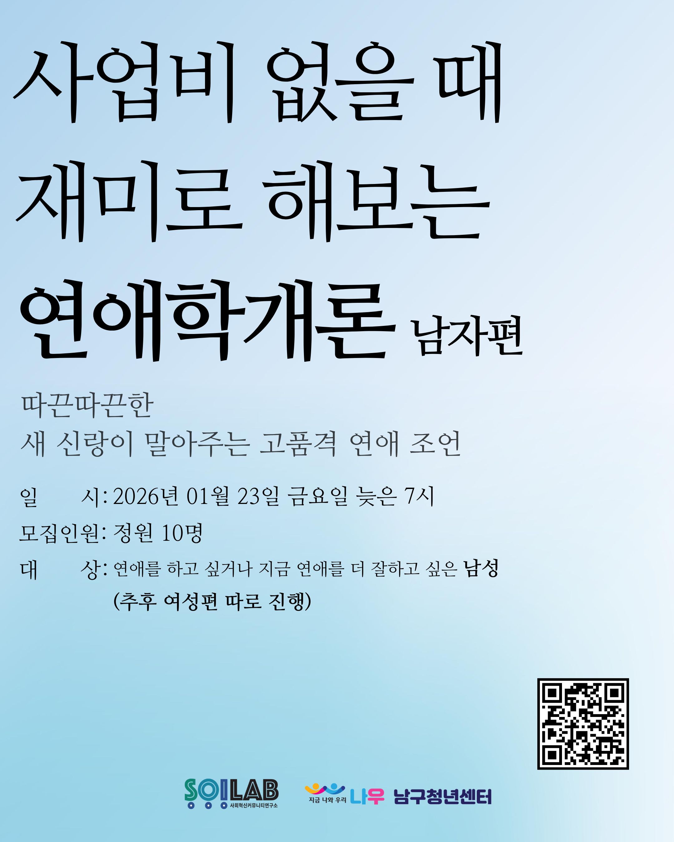 📌 대상: 연애에 관심 있거나 연애를 더 잘하고 싶은 남성