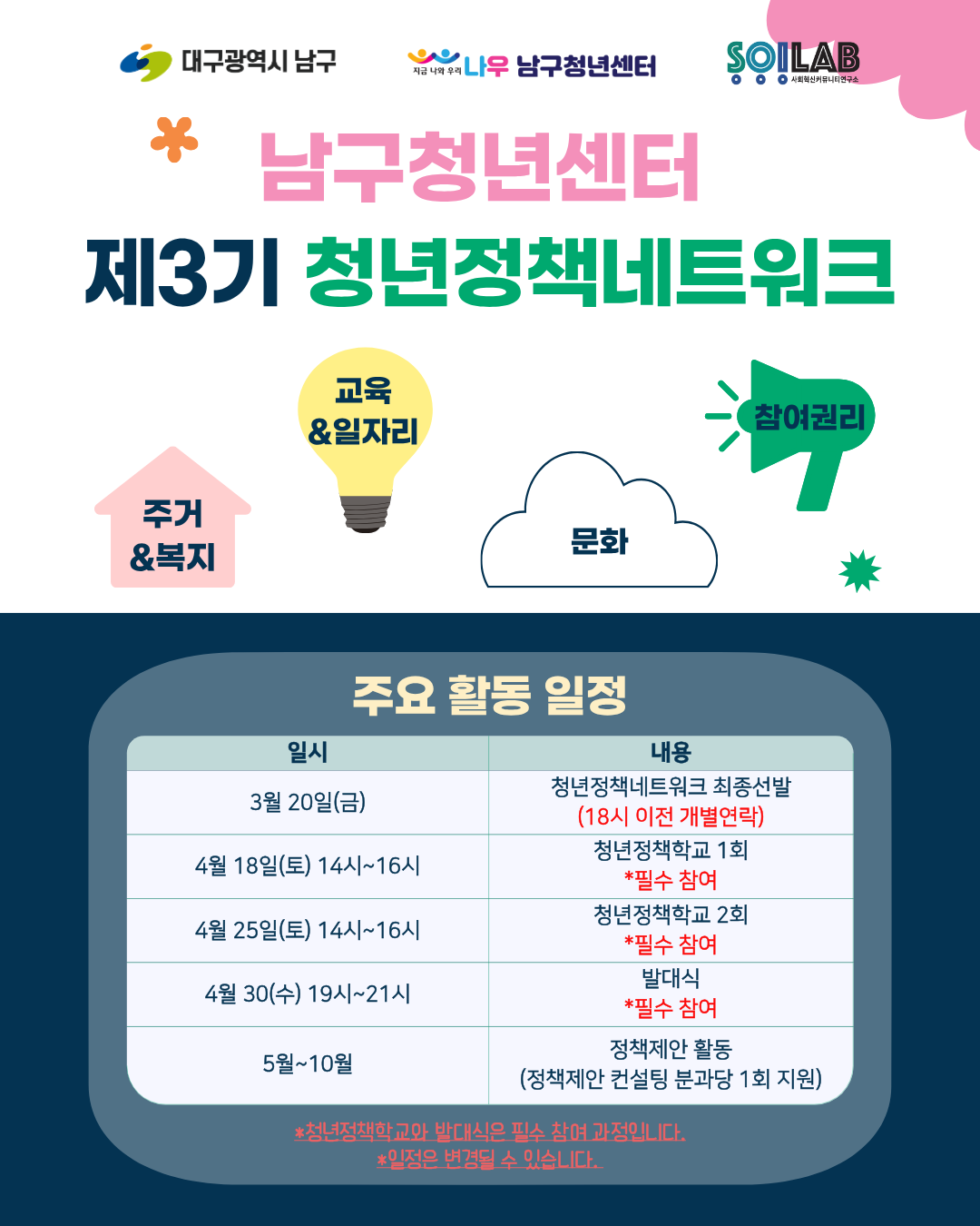 📢 제3기 남구청년정책네트워크 참여자 모집