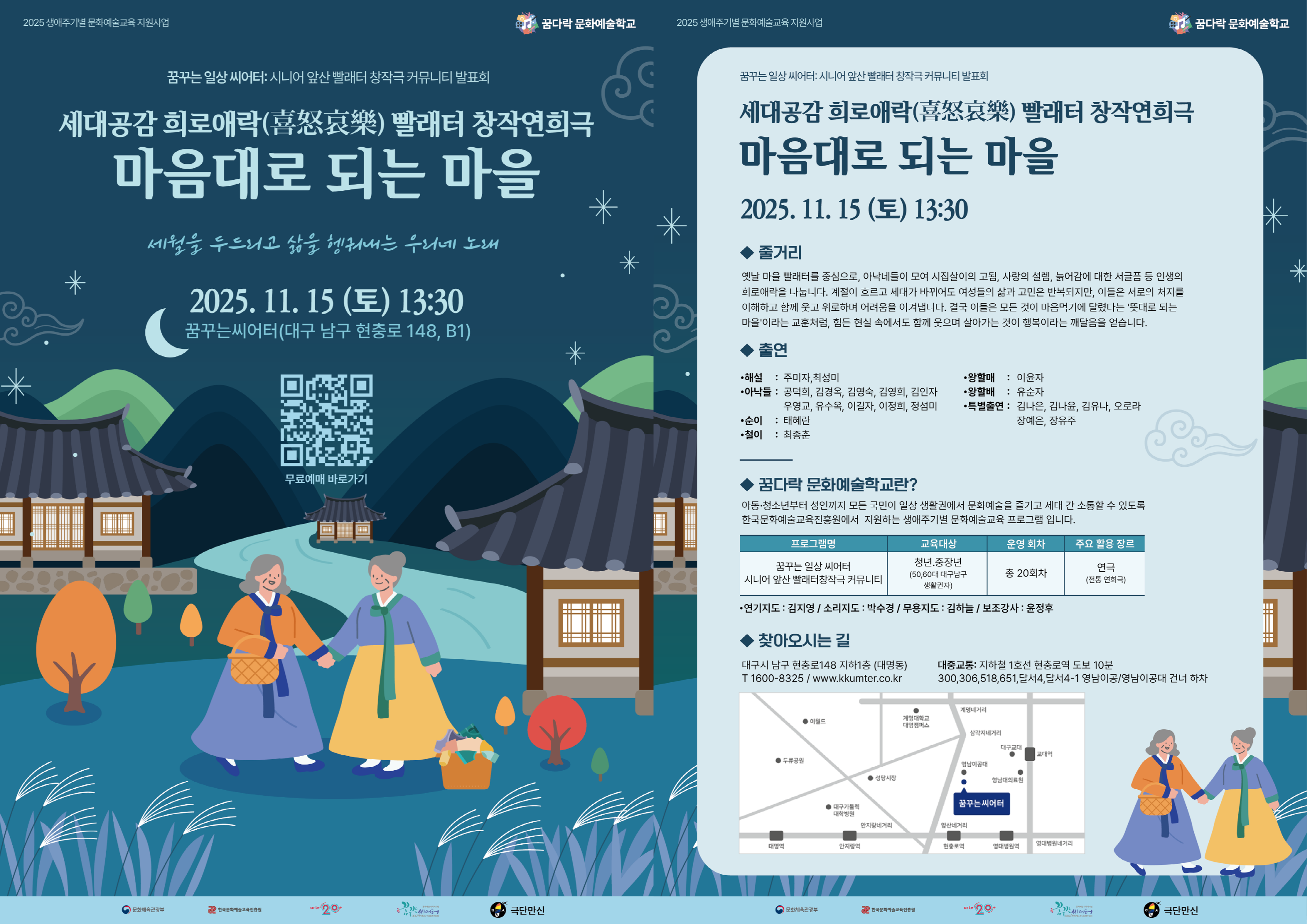 2025년 생애주기별 문화예술교육 지원사업의 일환으로, 꿈꾸는씨어터가 지역 주민들과 함께 만든 특별한 공연이 무대에 오릅니다.