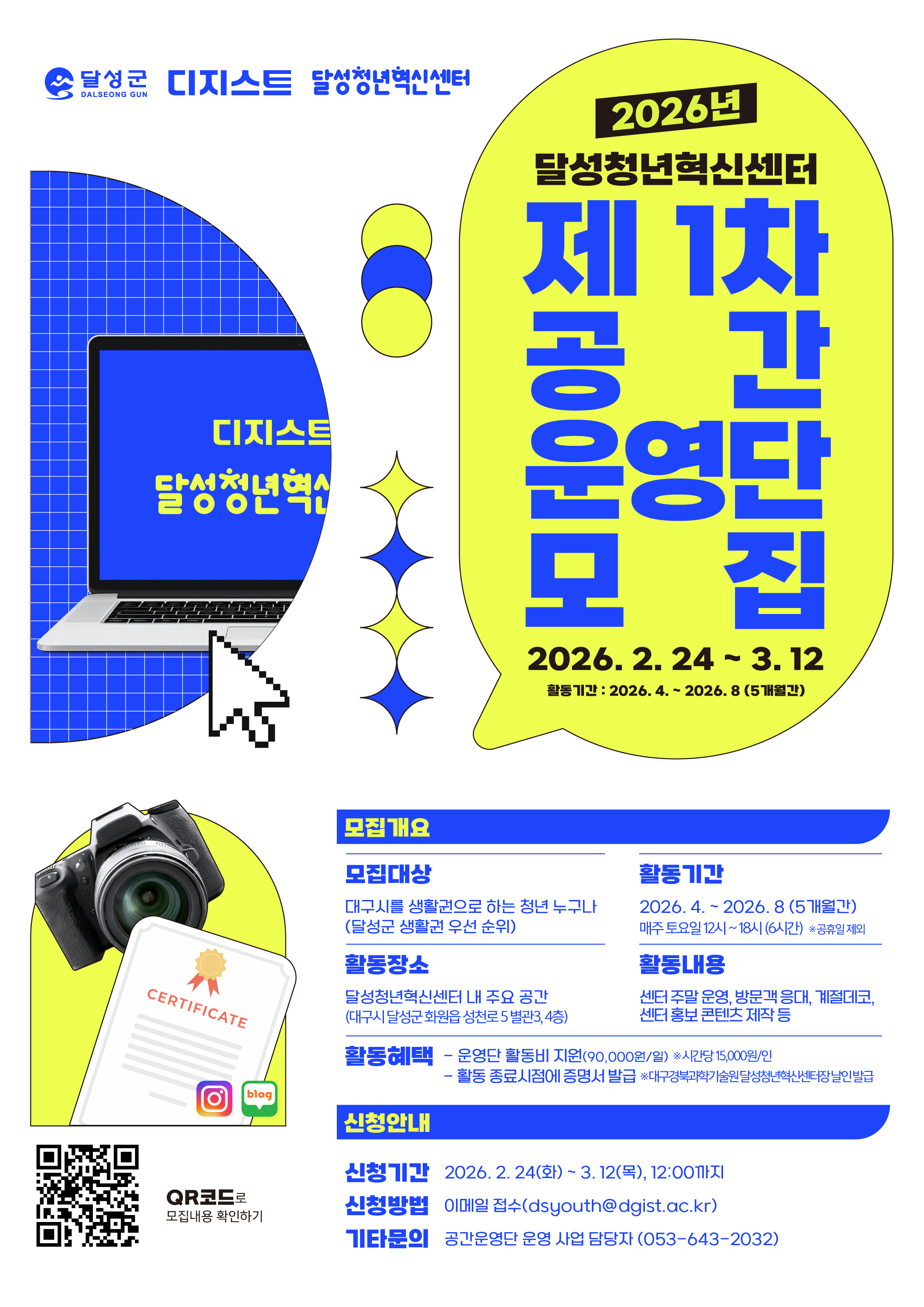<2026년 달성청년혁신센터 제1차 공간운영단 모집>