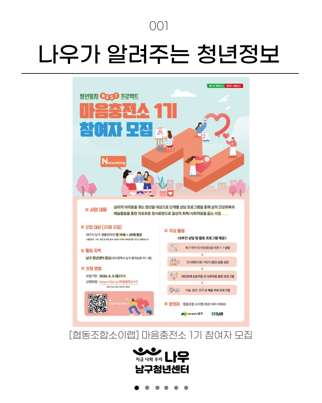 ✨ 청년 마음 회복을 위한 마음충전소 1기 참여자 모집 ✨