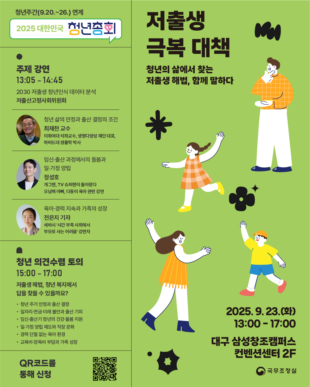 [2025 대한민국 청년총회] 청년의 삶에서 찾는 저출생 해법, 함께 말하다 세 번째 청년총회가 대구에서 열립니다! 저출생은 더 이상 남의 이야기가 ...
